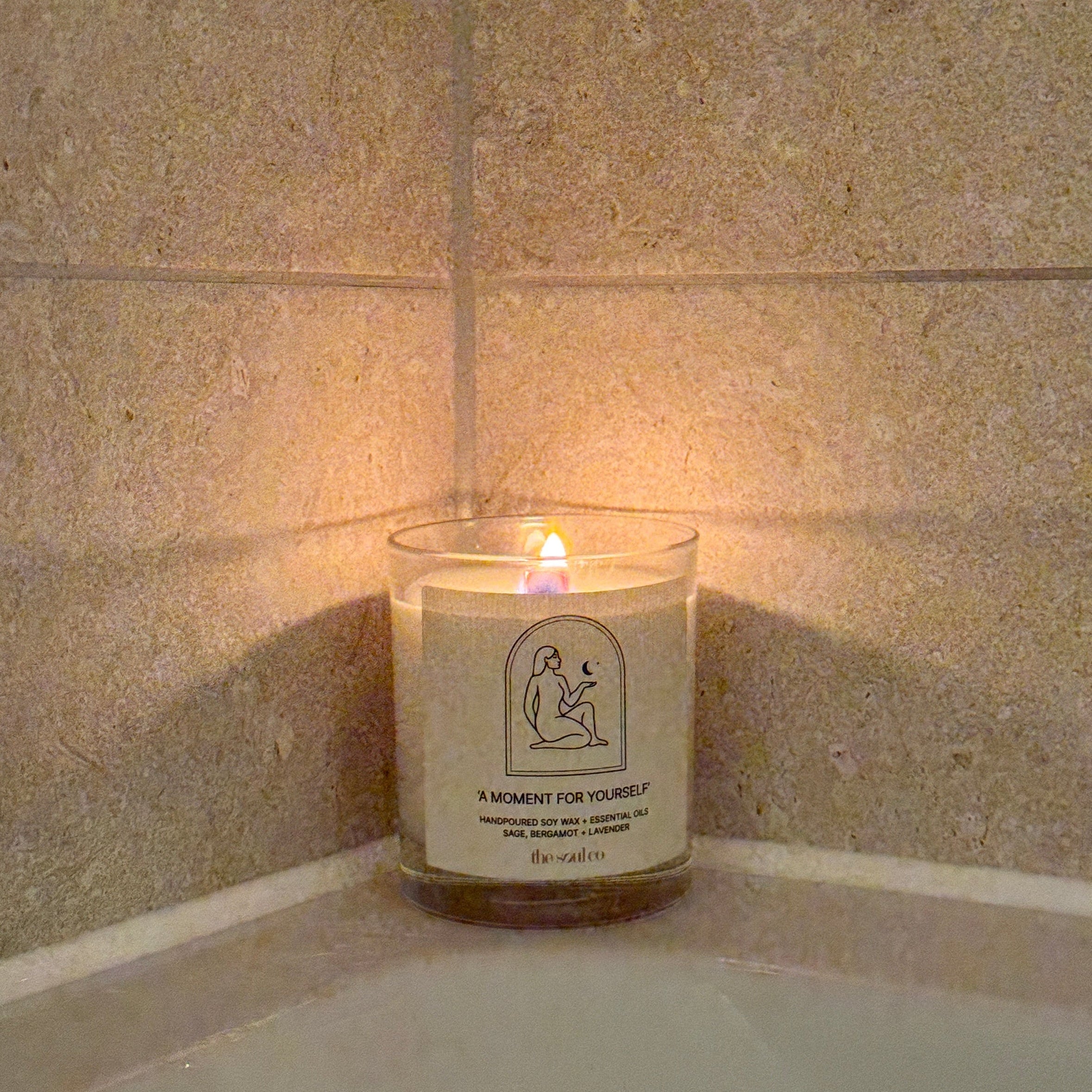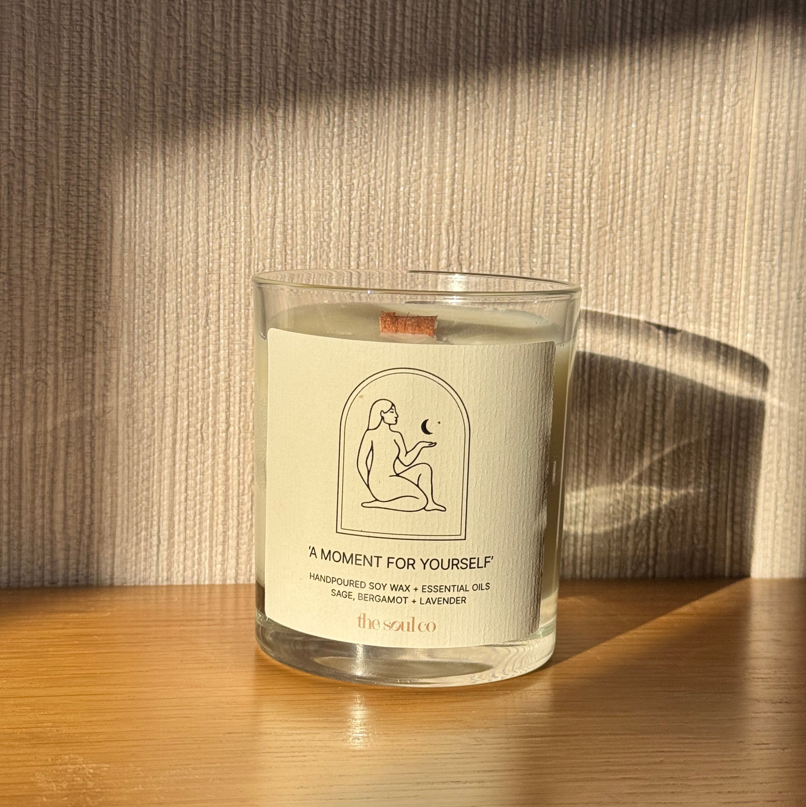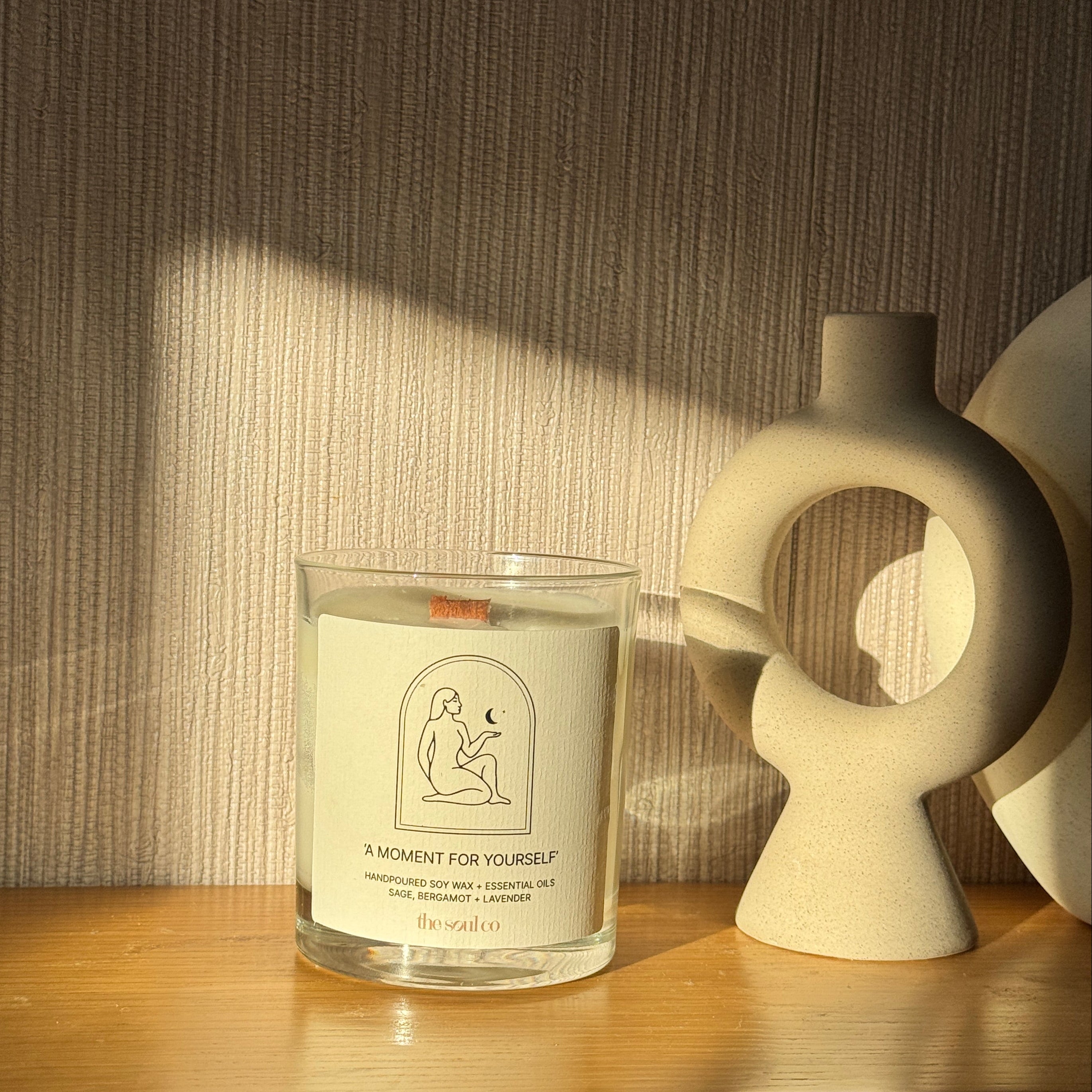 Carefully hand-poured from pure soy wax, gently infused with the essential oils of Clary Sage, Bergamot and Lavender — this candle is a quiet offering to your self care routine.
